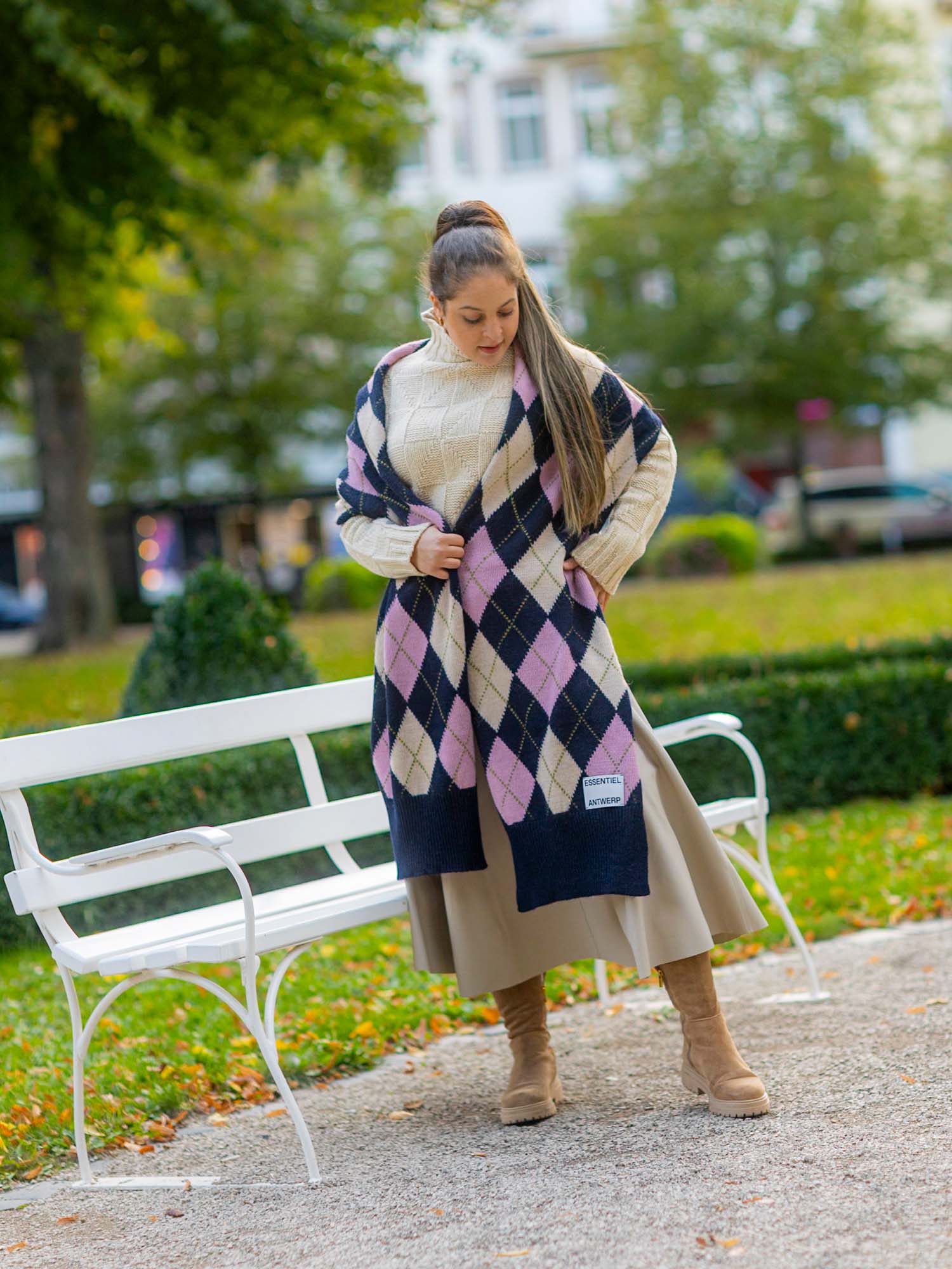 Essentiel Antwerp: Der große Jacquard-Schal ist mit einem auffälligen Argyle-Motiv versehen. Er ist aus einer warmen Wollmischung, die 10% Alpaka enthält, gefertigt, ist weich und hat eine tolle Struktur, während die gerippten Abschlüsse und das dezente Logoetikett ein raffiniertes Finish verleihen. Mit einer Größe von 250 cm x 41 cm, lässt er sich leicht umwickeln und drapieren und schafft Volumen und Wirkung. Wollmischgewebe, Mittelschwerer Strick, 250 x 41 cm, Gerippte Bündchen, Made in Italy, Navy/Rosa/Hellrosa. Material: 50% Wolle;40% Acryl;10% Angora.